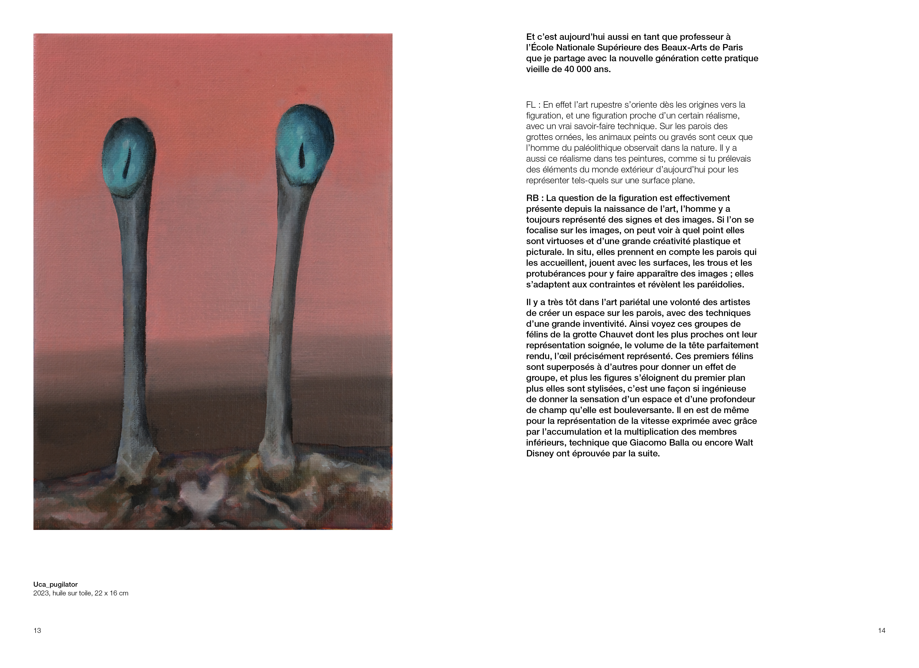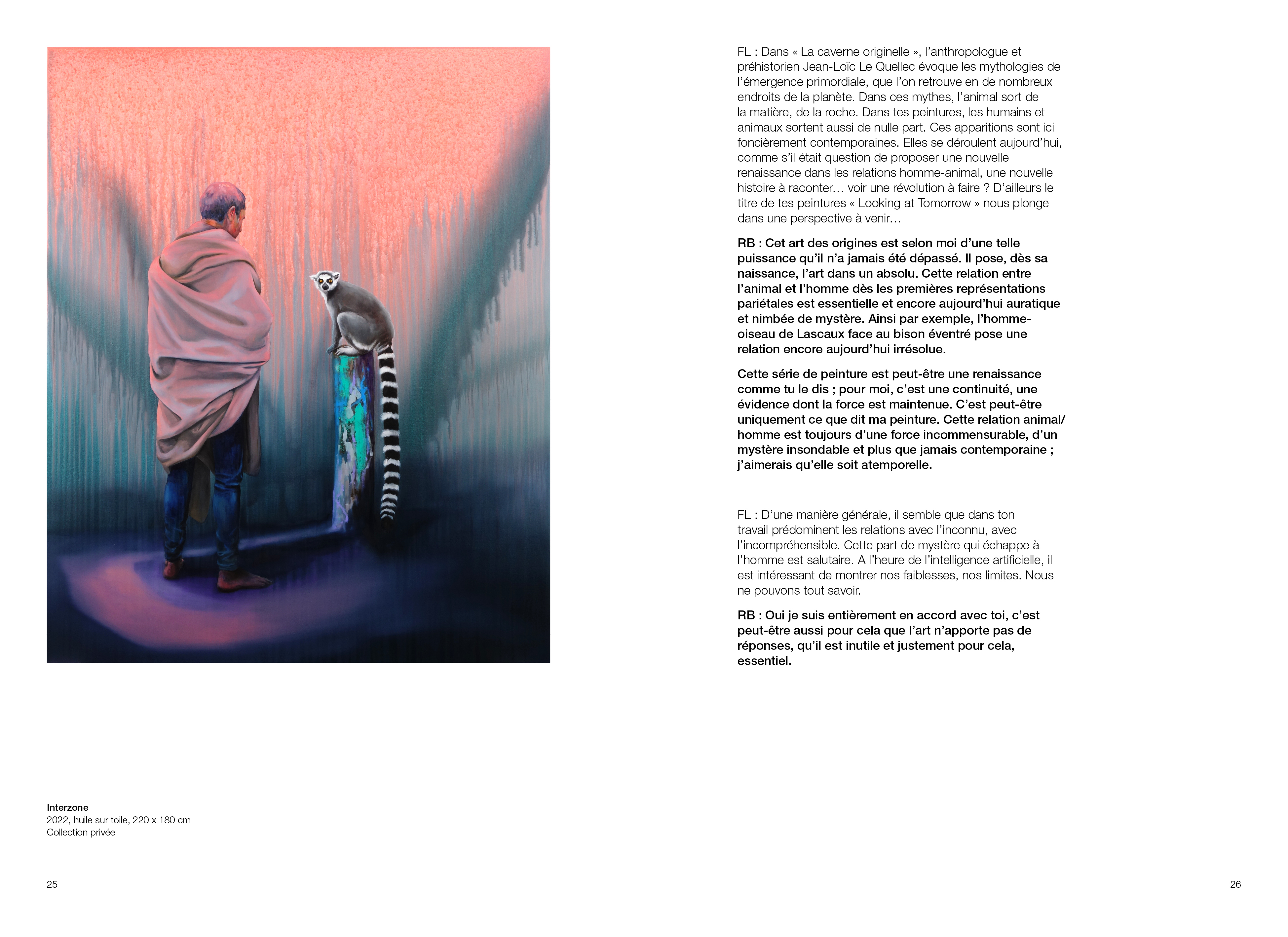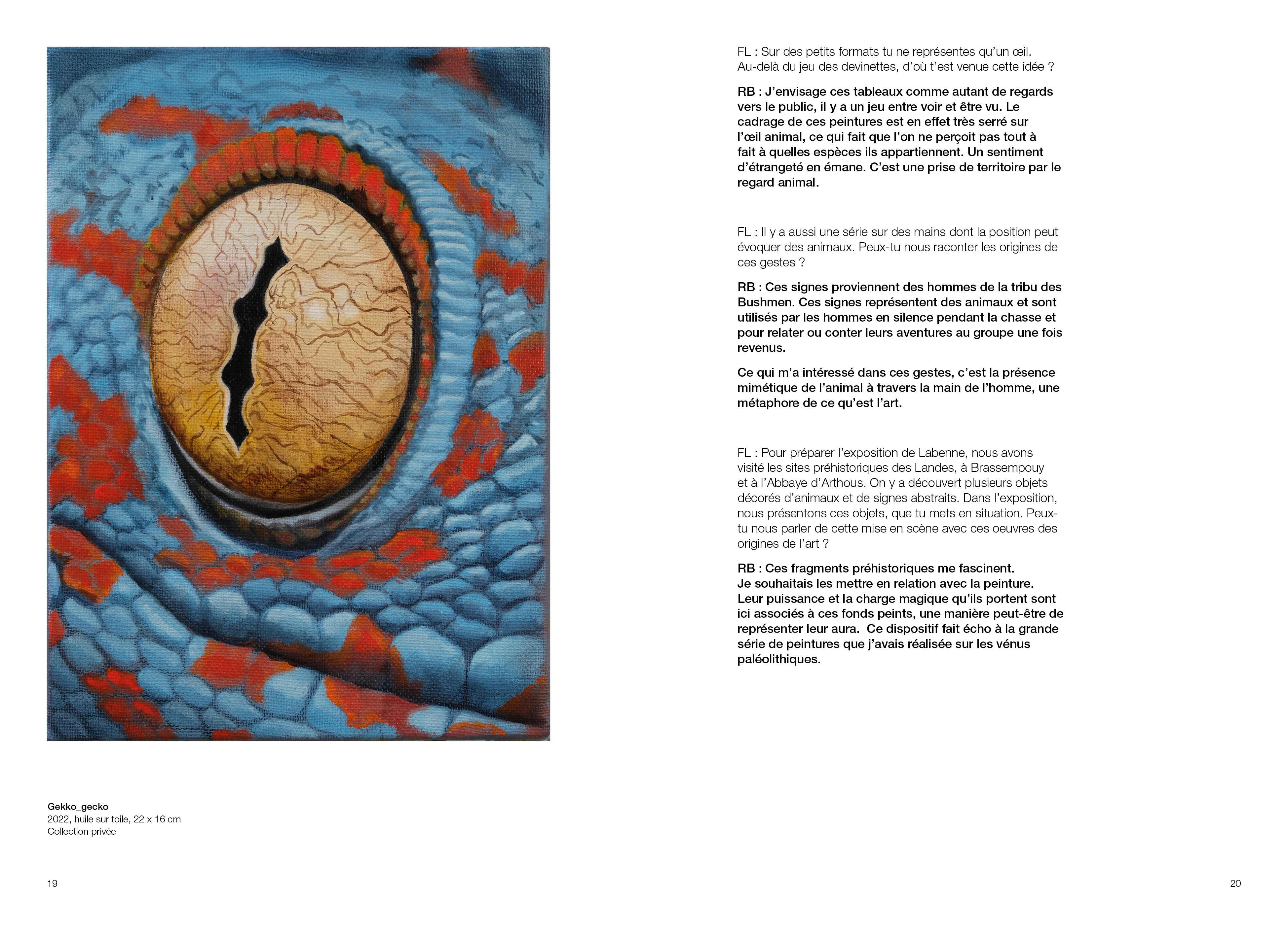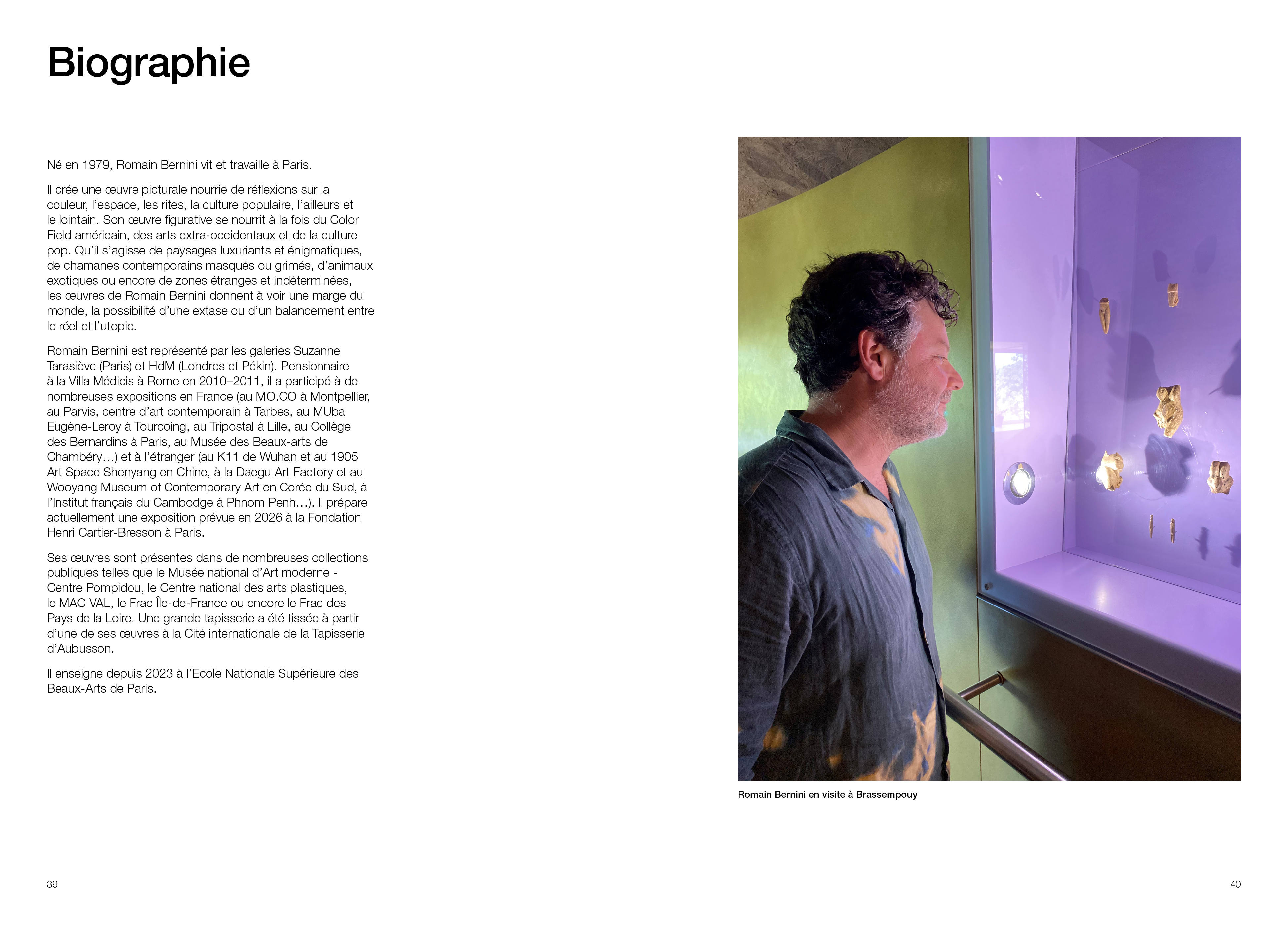 L’exposition « Contacts » investit la grande salle d’exposition du PARCC. Romain Bernini y présente plusieurs séries de peintures sur un thème que l’on pourrait qualifier d’animalier. Mais ces interactions entre l’humain et l’animal sont ici sources d’étrangeté, de mystère. En effet, comment aujourd’hui se positionner face à la condition de l’animal sauvage ? A l’heure d’une importante crise de la biodiversité, nous paraissons bien démunis. Alors l’artiste Romain Bernini propose un horizon poétique qui interpelle le visiteur.