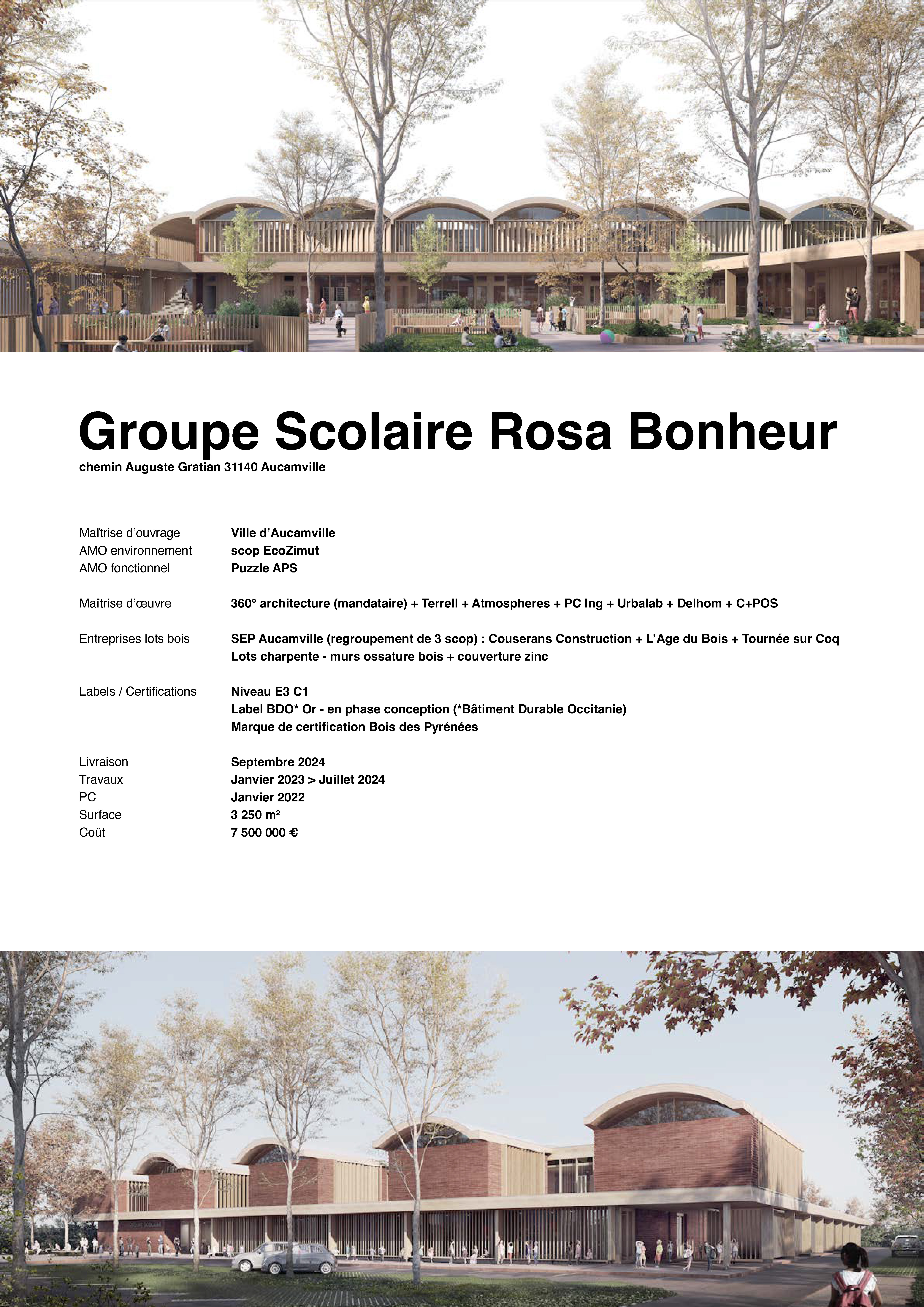 Pour valoriser leur intervention significative sur la construction du groupe scolaire Rosa Bonheur, la SEP Aucamville, (regroupement de 3 scop :