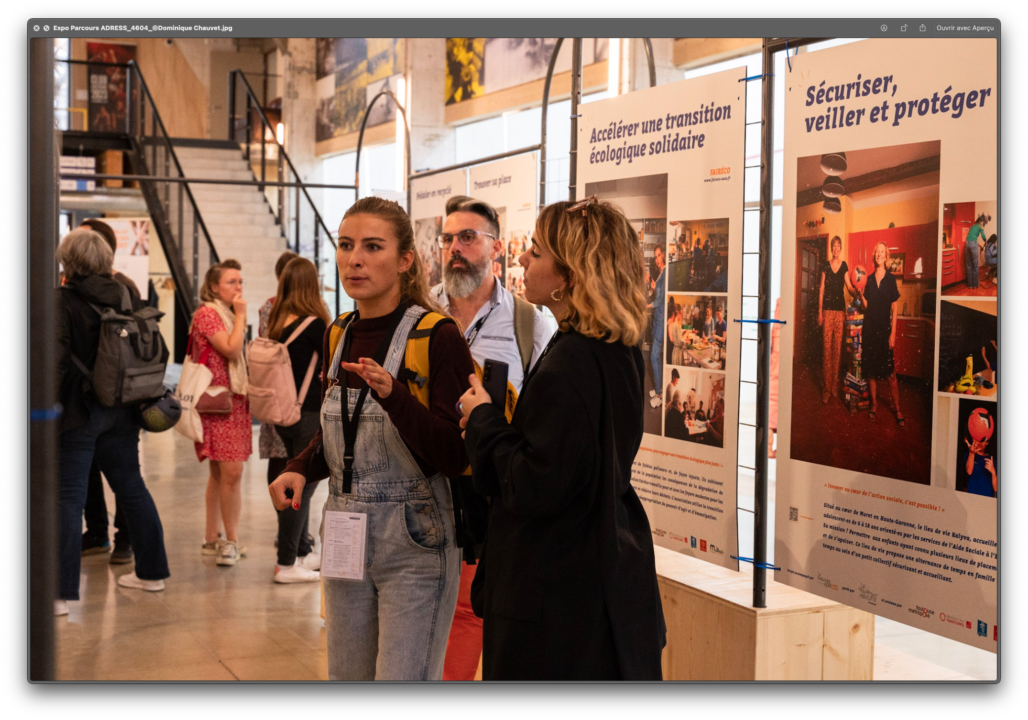 Pour cette exposition et les prochaines envisagées dans les jardins publics ou les lieux “totem” de l’ESS Toulousains, le Parcours ADRESS nous a confié la scénographie et la conception des panneaux, (que nous avons réalisé en nous appuyant sur l’identité visuelle travaillée par .Repliq)