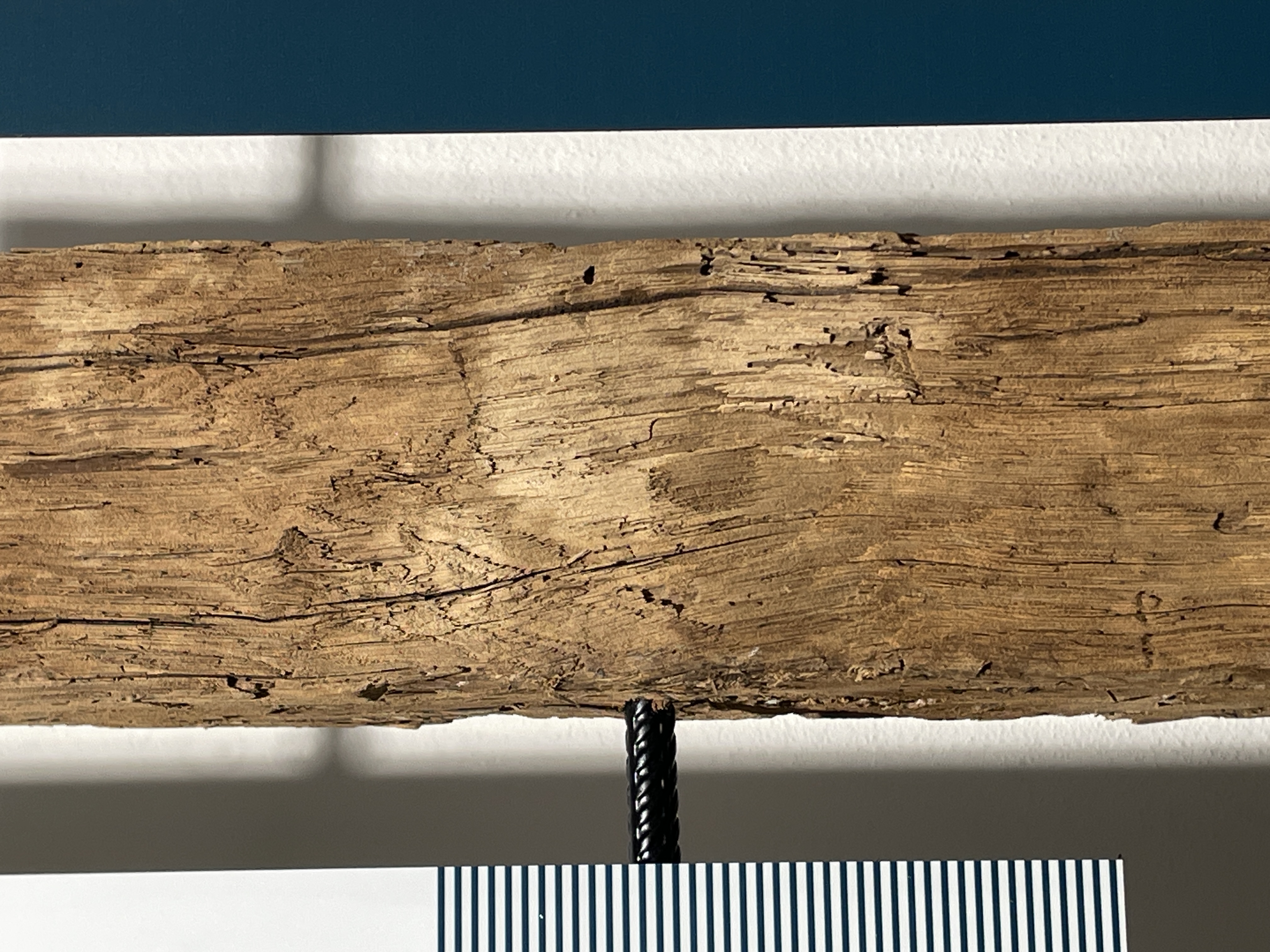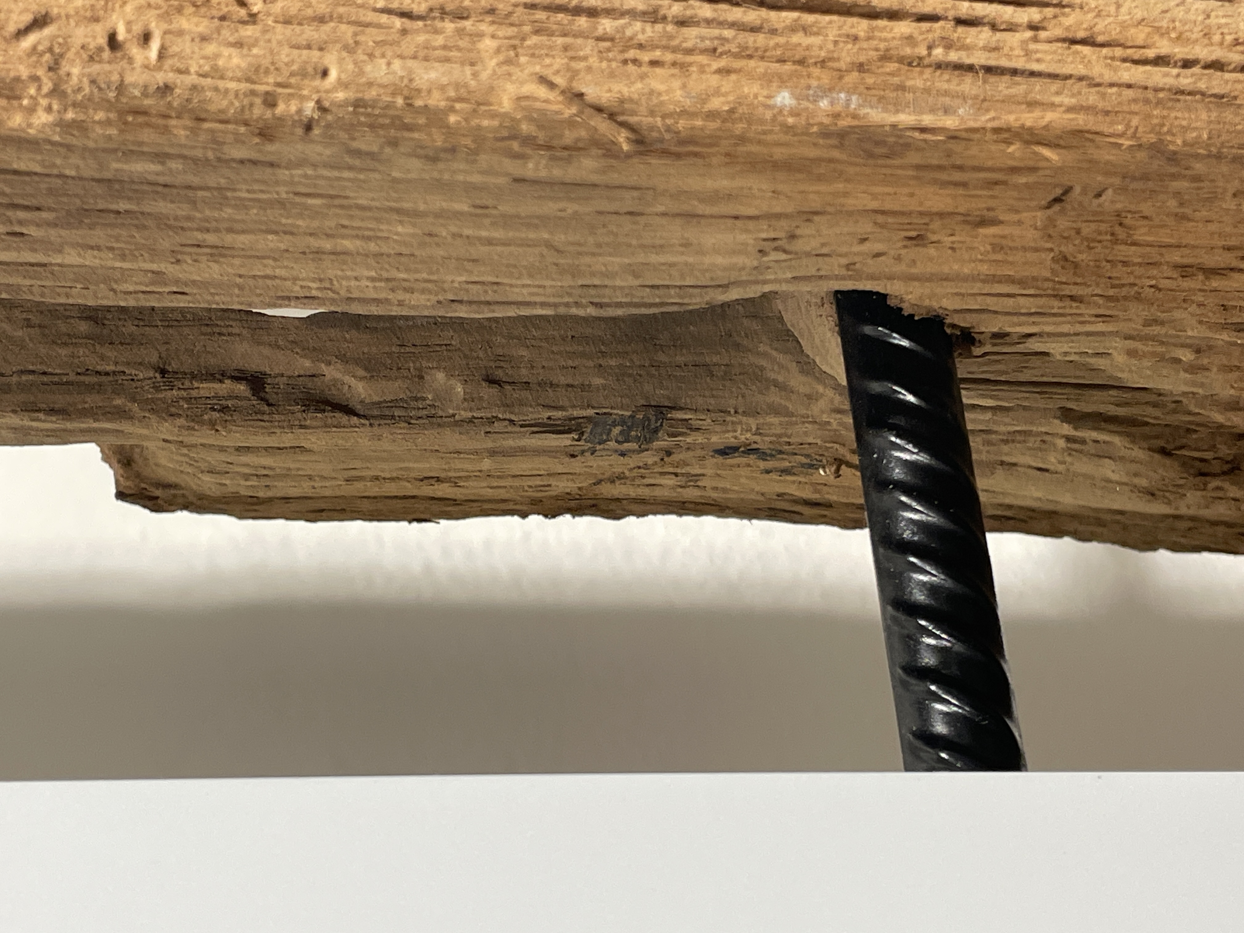 Les pans de bois, supports de l’exposition, proviennent des façades de l’immeuble situé au 8 place Pasteur en face de la Cathédrale, édifié au XVIIIe siècle et déconstruit en 2025. Les fers à béton (lignes d’accroche des panneaux d’exposition et structure primaire des étagères) et les étagères de la matériauthèque sont aussi issus du réemploi et commandés à la Maison Tournesol.