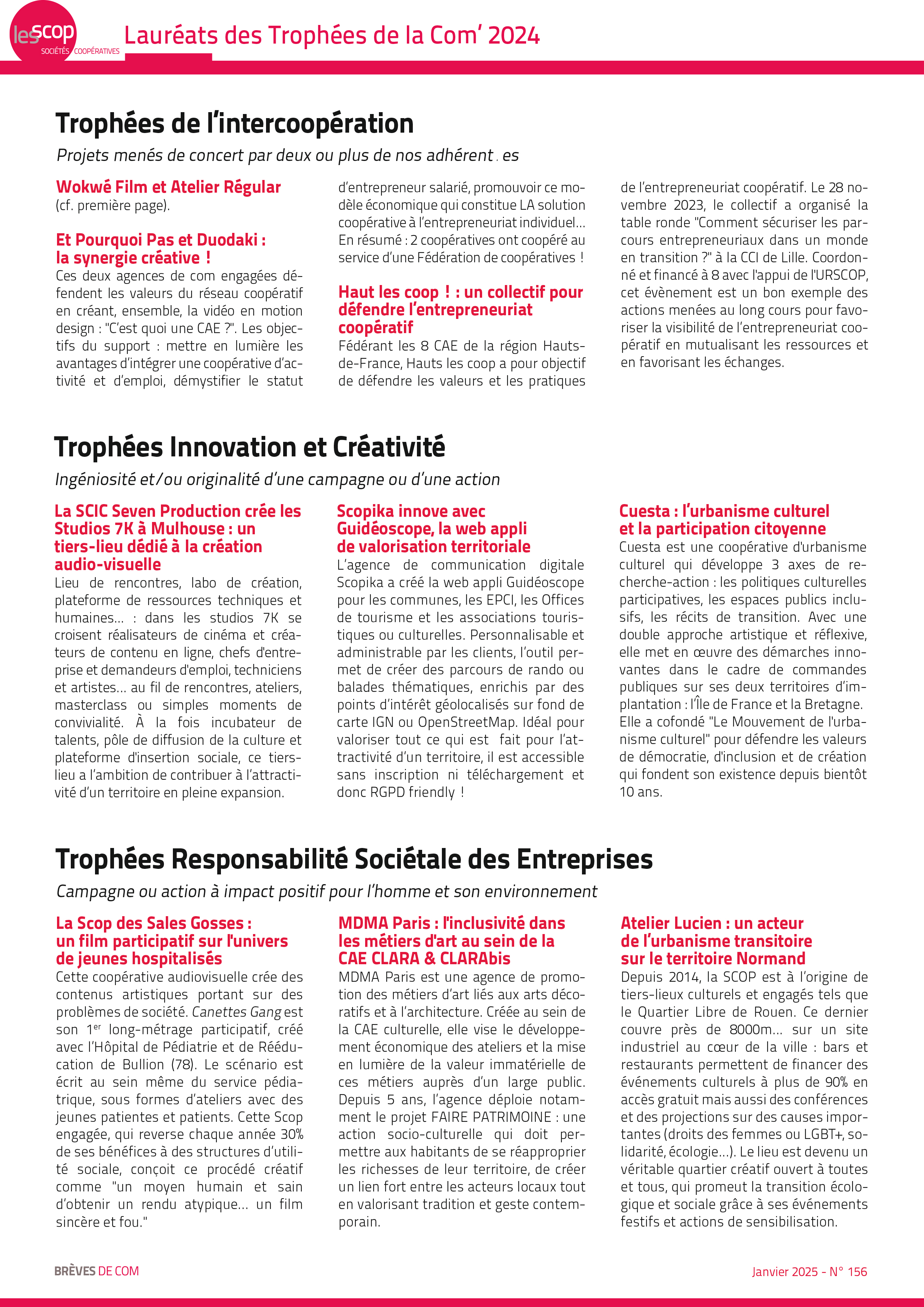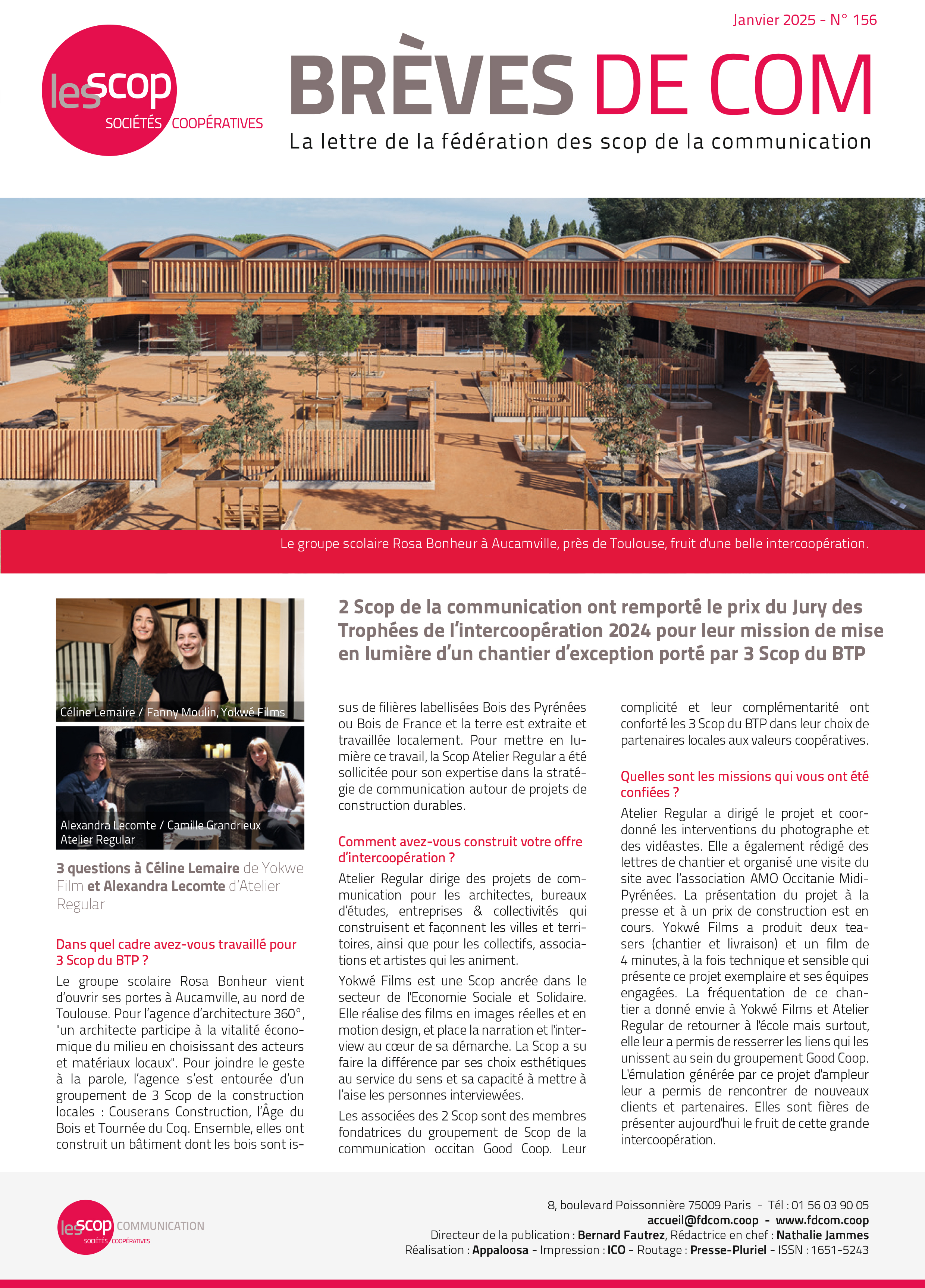 2 scop de communication ont remporté le prix du Jury des Trophées de l’intercoopération 2024 pour leur mission de mise en lumière d’un chantier d’exception porté par 3 scop du BTP.