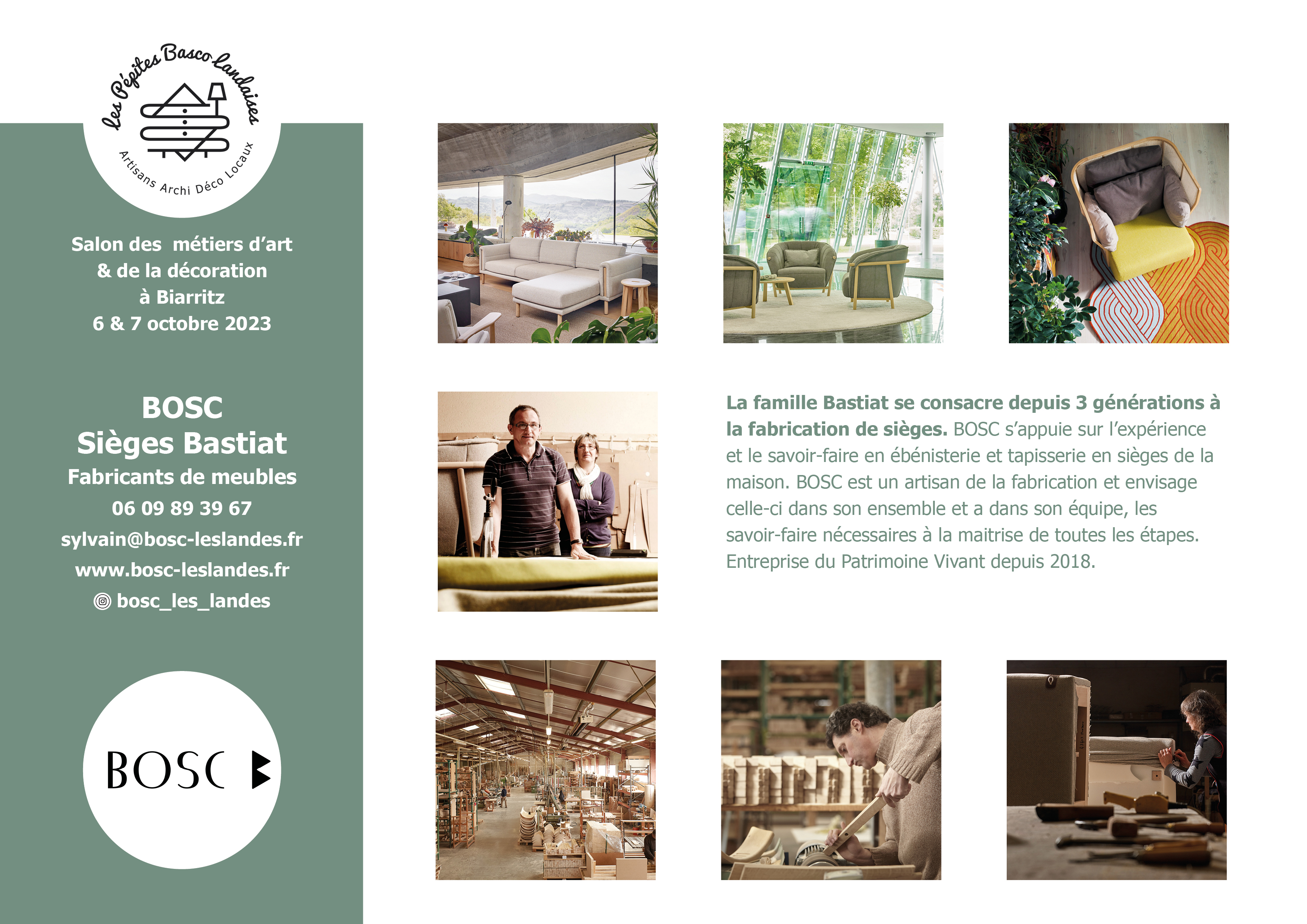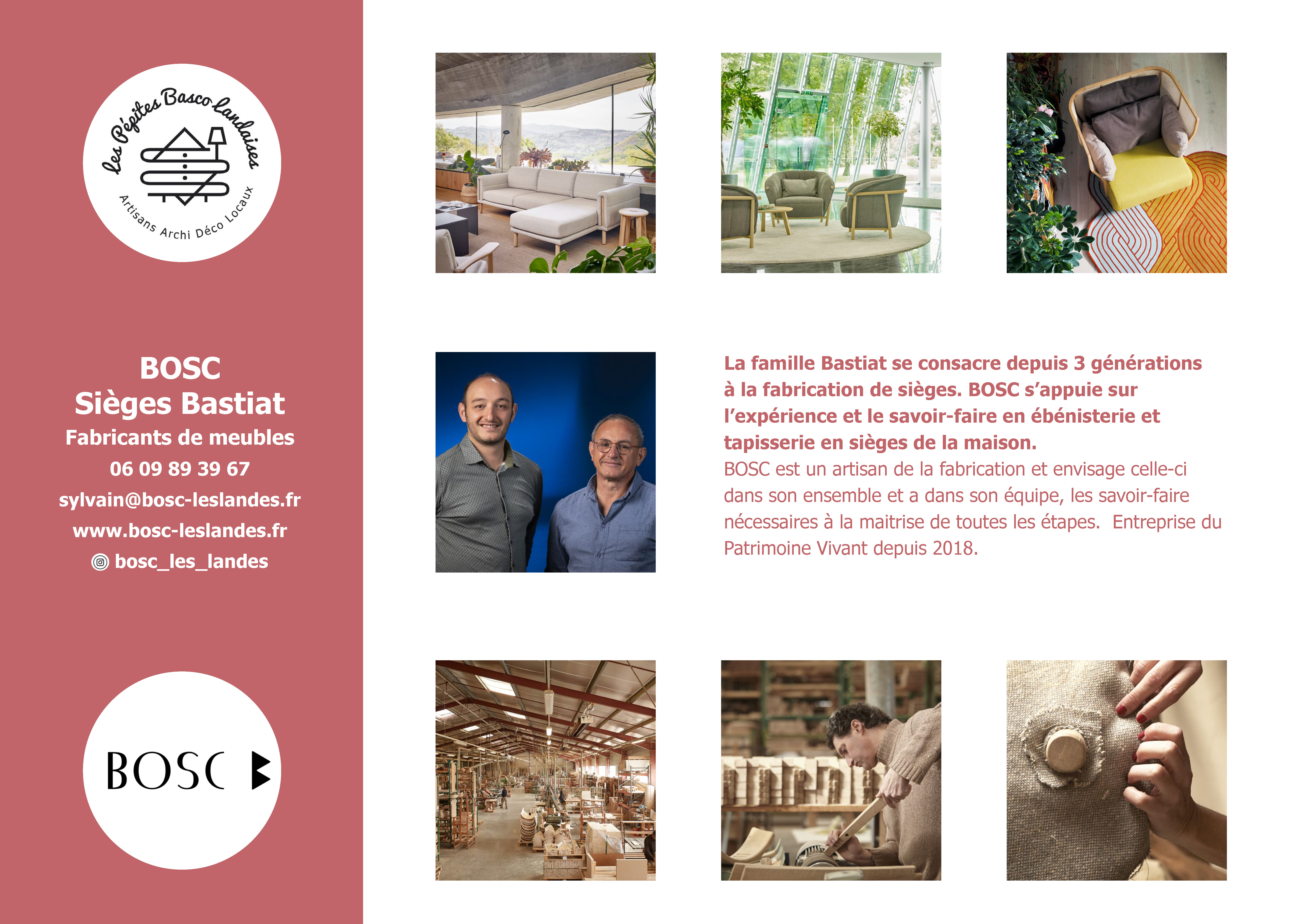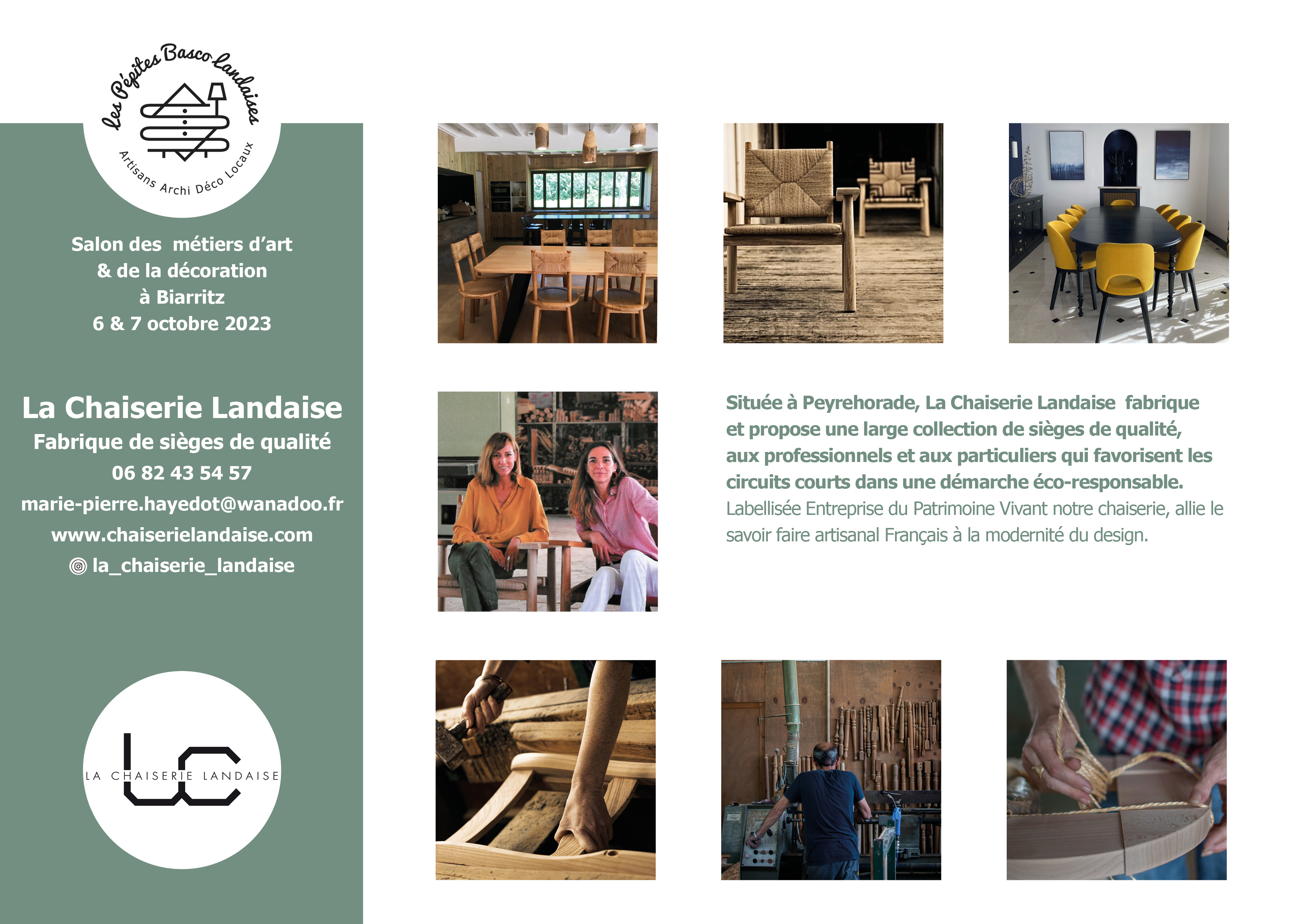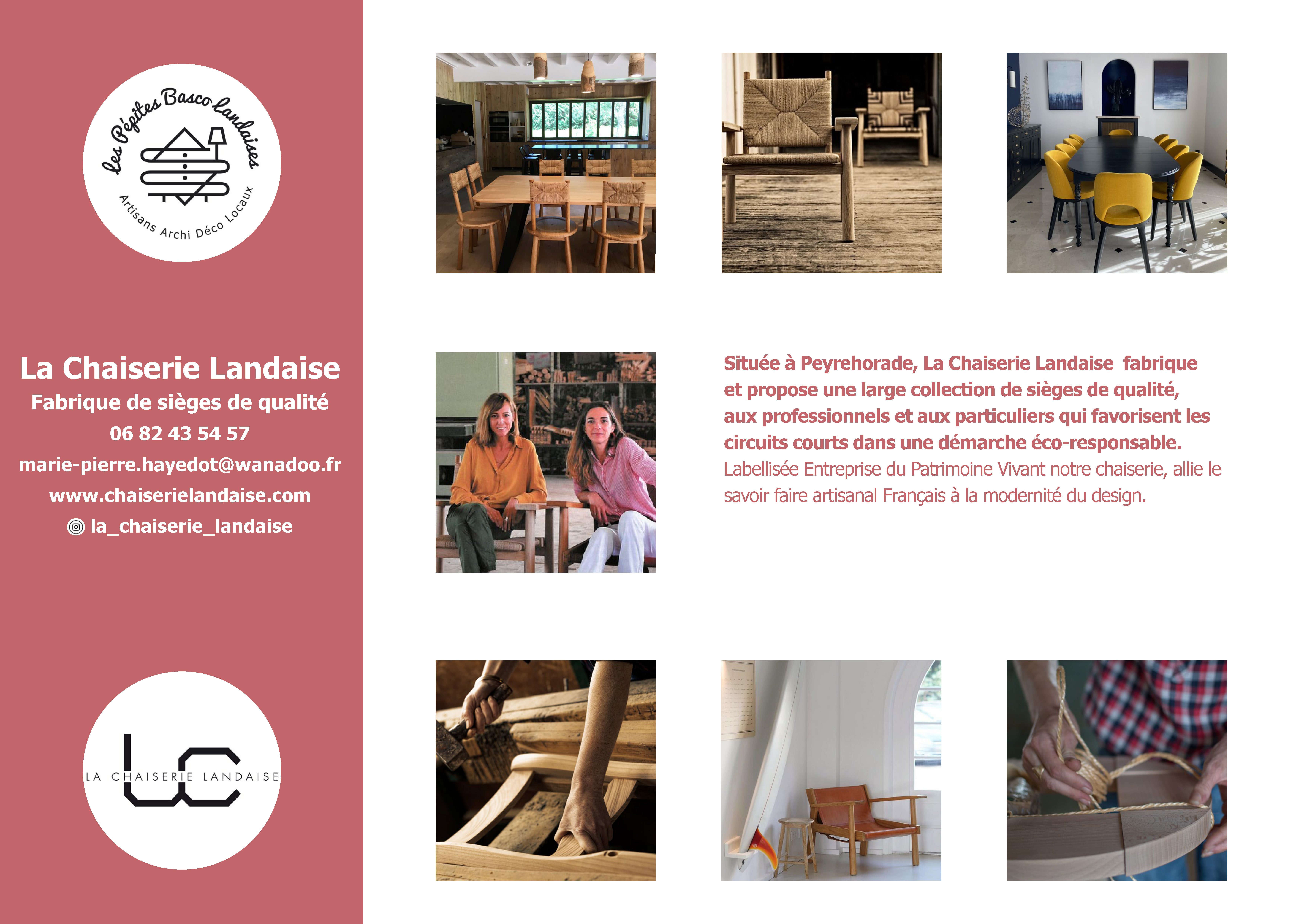 Les Pépites Basco Landaises c’est un collectif d’artisans et d’artistes. Le projet est né d’une envie sincère de rencontres, de partage, d’échanges, de complémentarité et de belles idées pour travailler ensemble sur des projets d’aménagement et de décoration au sein des territoires dans lesquels les membres du collectif vivent et travaillent. Différentes disciplines sont présentées, dont deux maisons labellisées Entreprise du Patrimoine Vivant : la Chaiserie Landaise et Bosc les Landes.