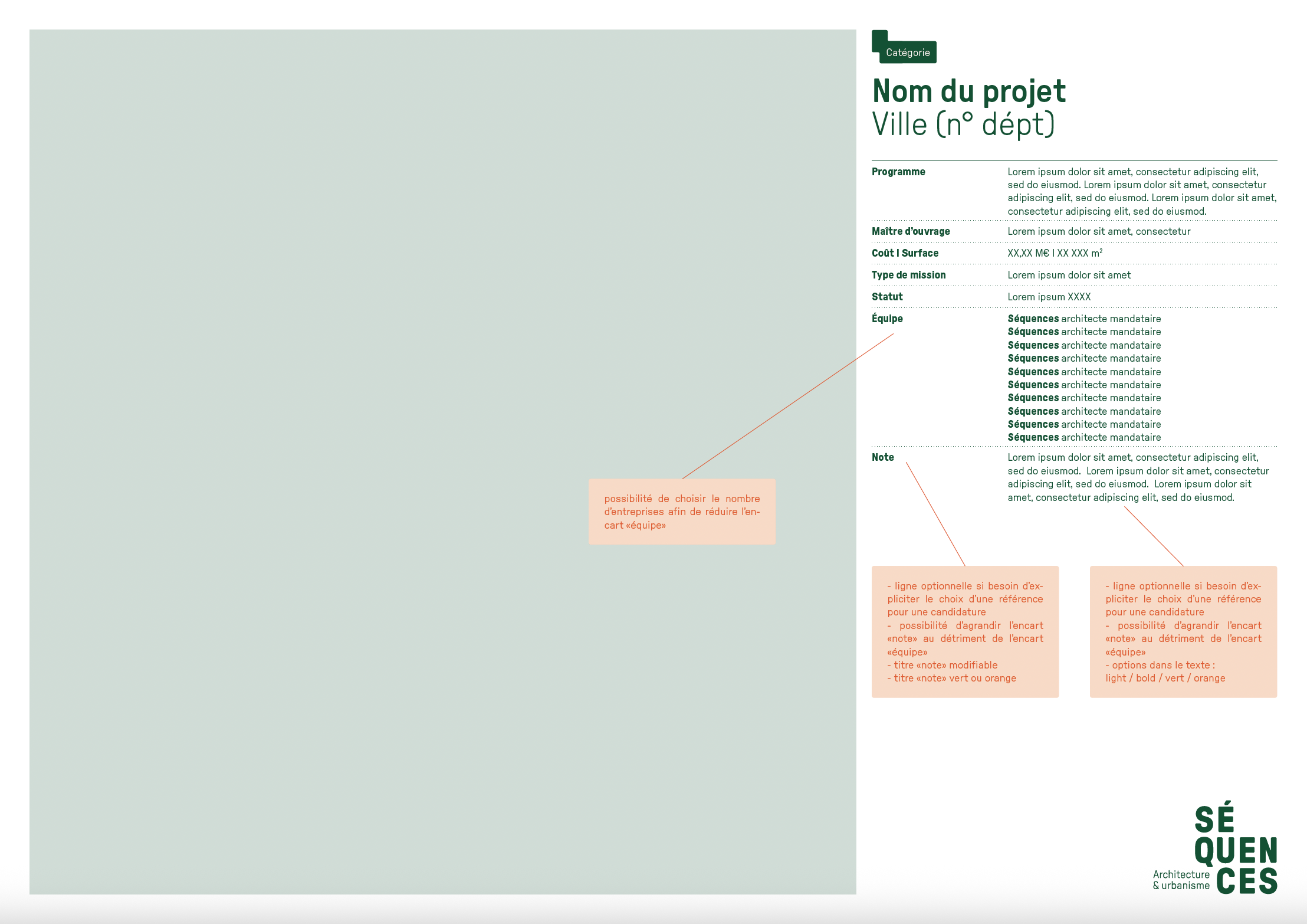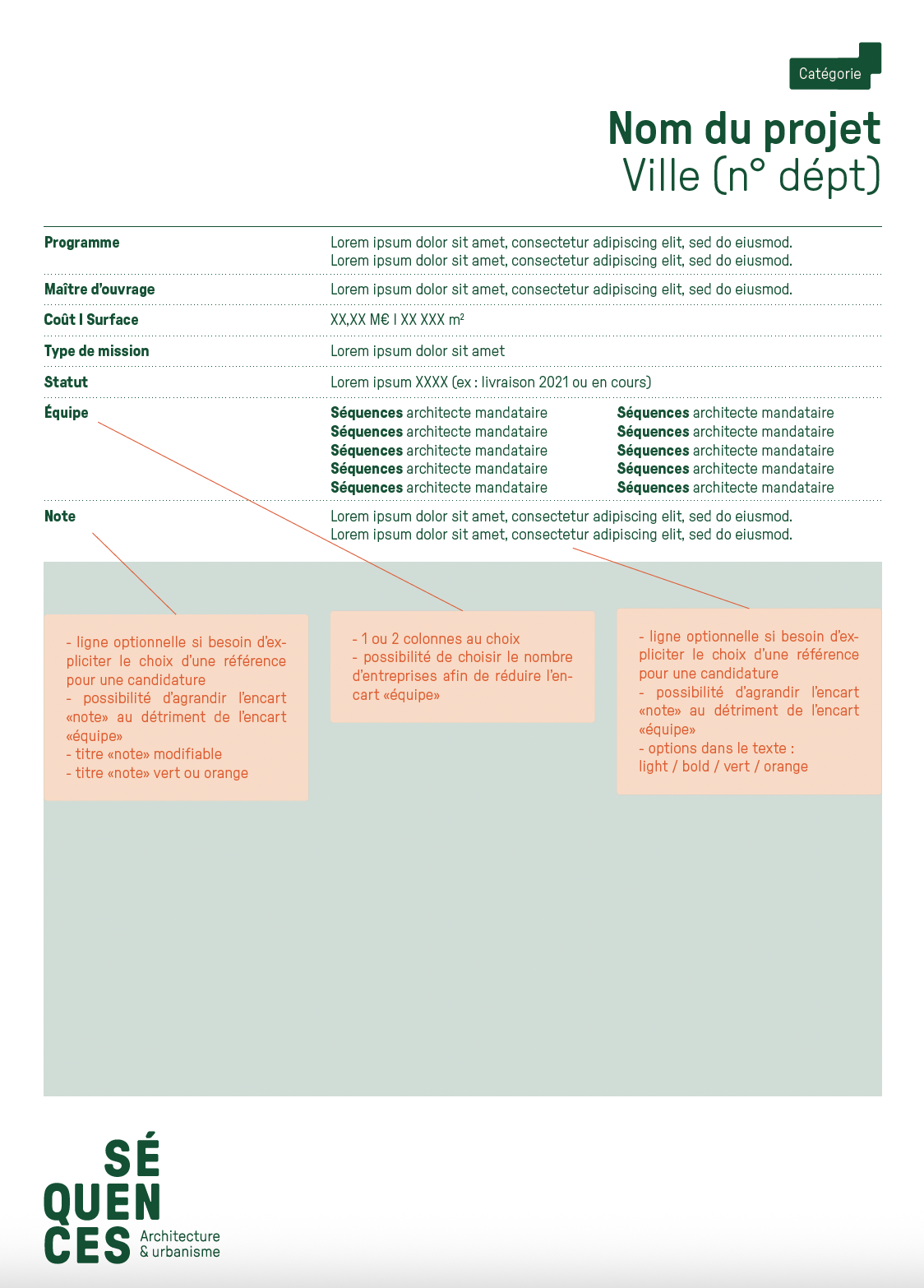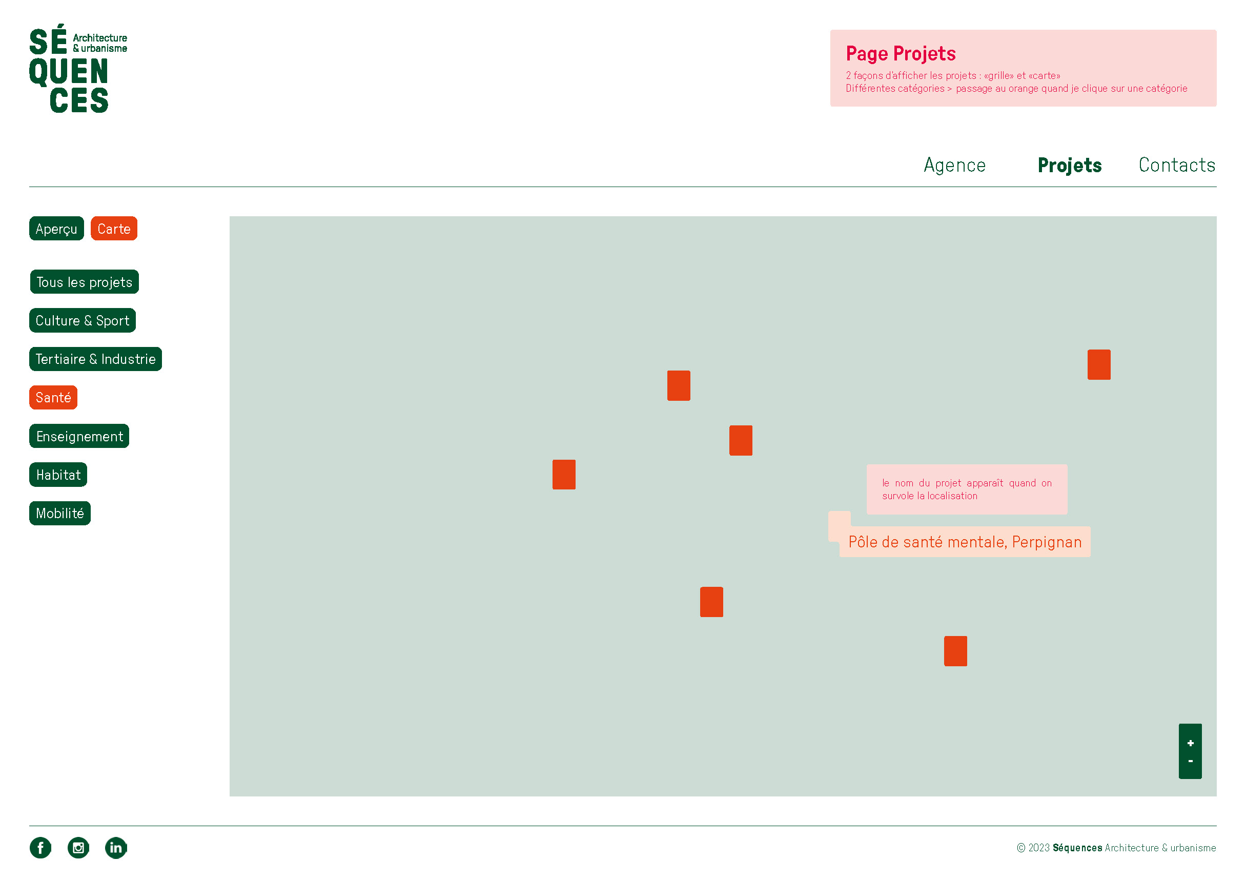 L’agence d’architecture et d’urbanisme Séquences nous a confié un diagnostic de l’ensemble de ses supports de communication existants qui a mené, en premier lieu, à la refonte totale de l’identité visuelle. Nous avons ensuite lancé la refonte du site internet et l’établissement de nouveaux outils digitaux tels que la possibilité d’éditer les fiches références et les listes de vignettes directement depuis le site. Nous avons dirigé ces missions et coordonné l’ensemble des phases de conception et de production. La conception graphique est signée Laura Savignac. Le développement des outils digitaux, toujours en cours, est signé Lucas Sifoni. Nous avons créé les gabarits pour les fiches références et les vignettes en lien direct avec la nouvelle identité.