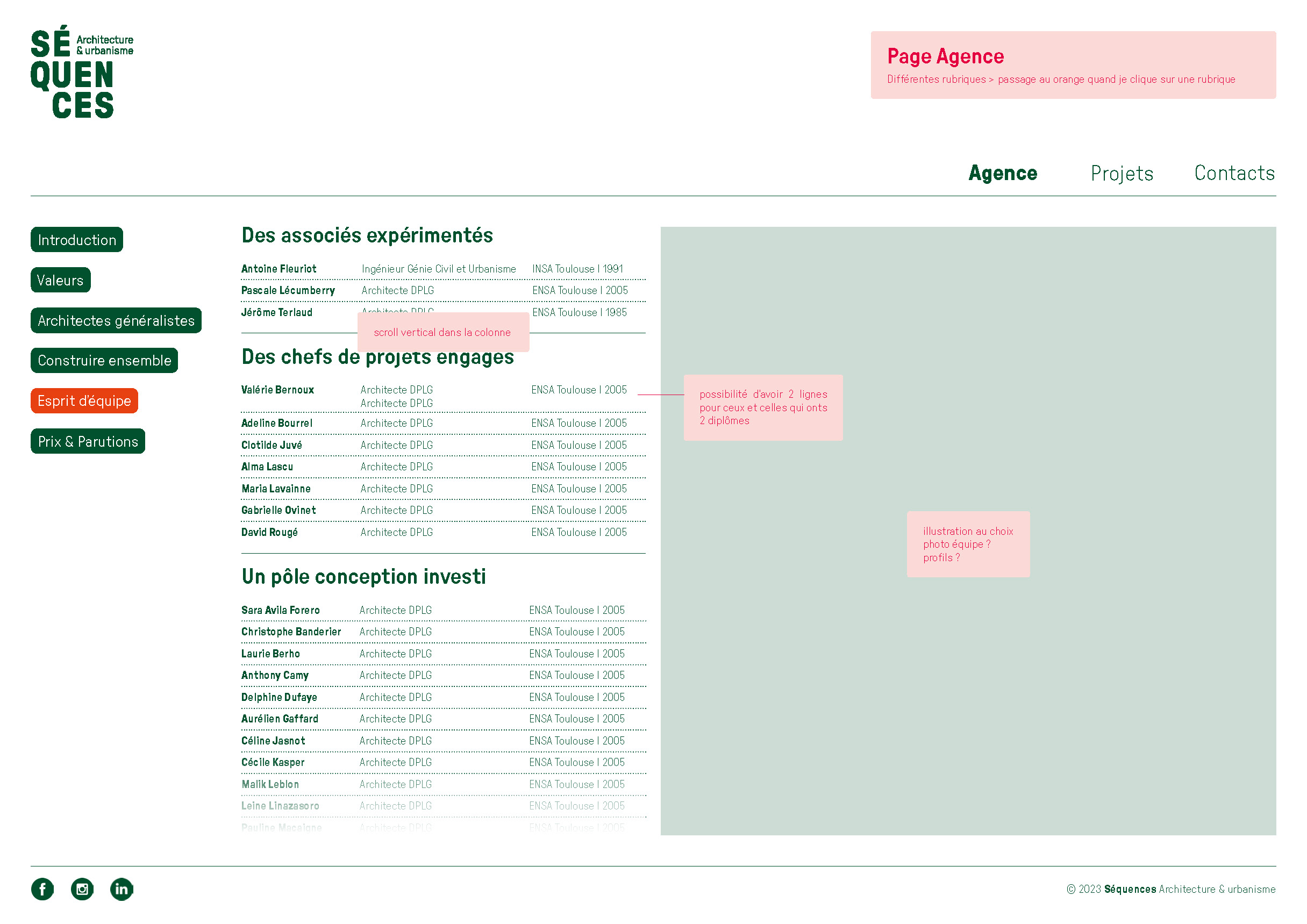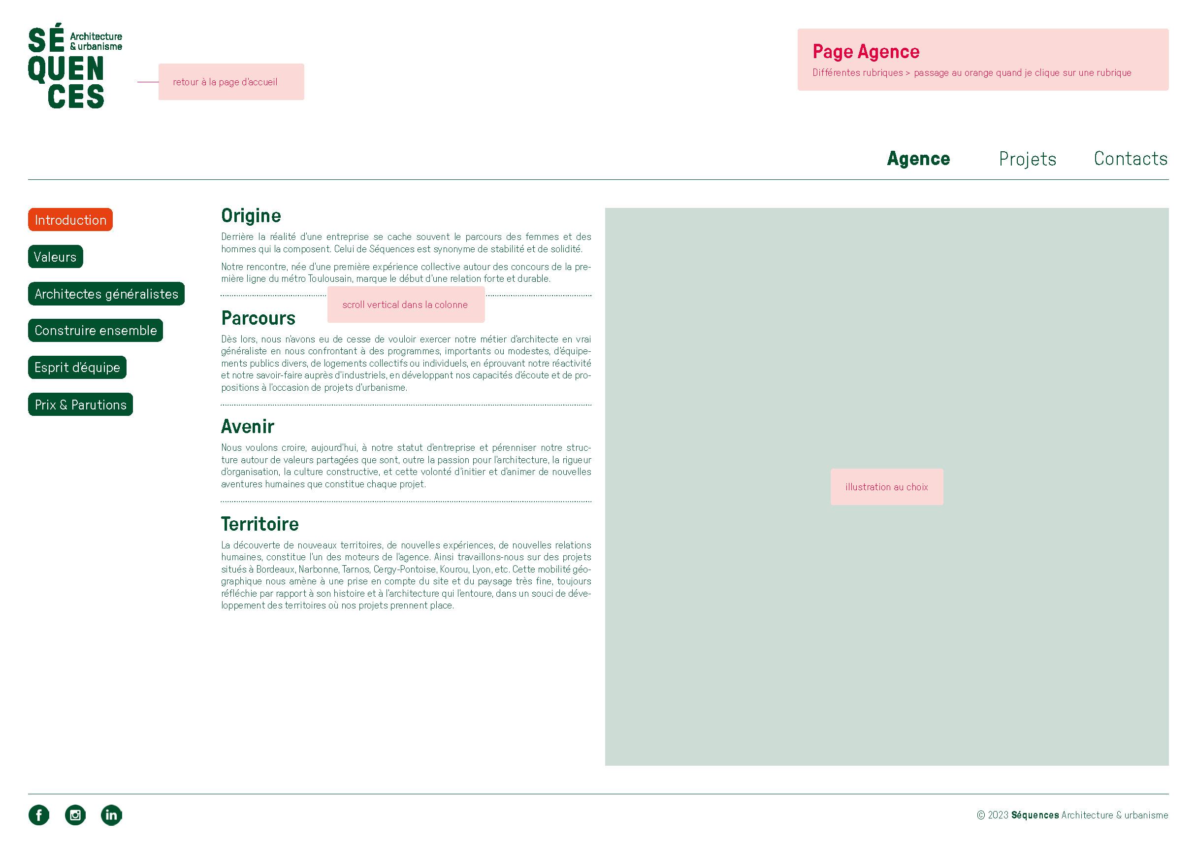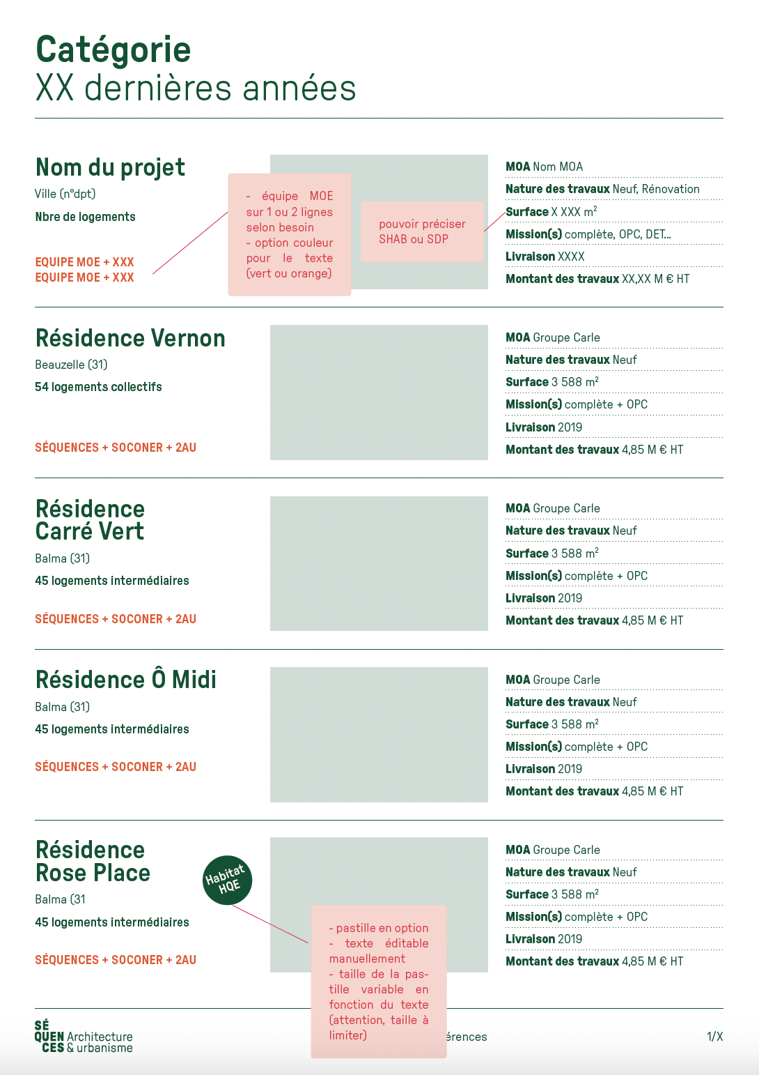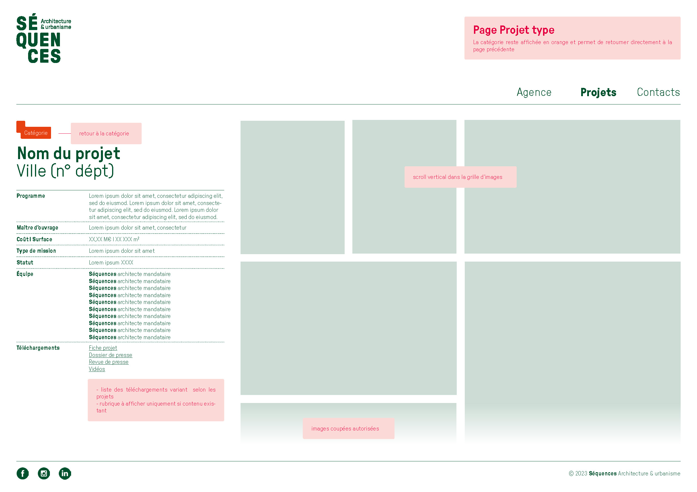 L’agence d’architecture et d’urbanisme Séquences nous a confié un diagnostic de l’ensemble de ses supports de communication existants qui a mené, en premier lieu, à la refonte totale de l’identité visuelle. Nous avons ensuite lancé la refonte du site internet et l’établissement de nouveaux outils digitaux tels que la possibilité d’éditer les fiches références et les listes de vignettes directement depuis le site. Nous avons dirigé ces missions et coordonné l’ensemble des phases de conception et de production. La conception graphique est signée Laura Savignac. Le développement des outils digitaux, toujours en cours, est signé Lucas Sifoni. Nous avons créé les gabarits pour les fiches références et les vignettes en lien direct avec la nouvelle identité.